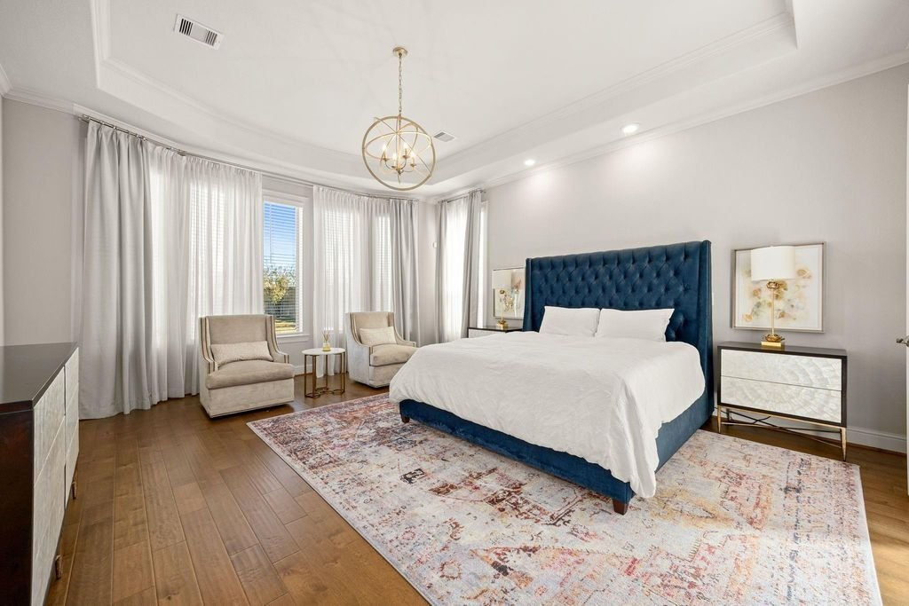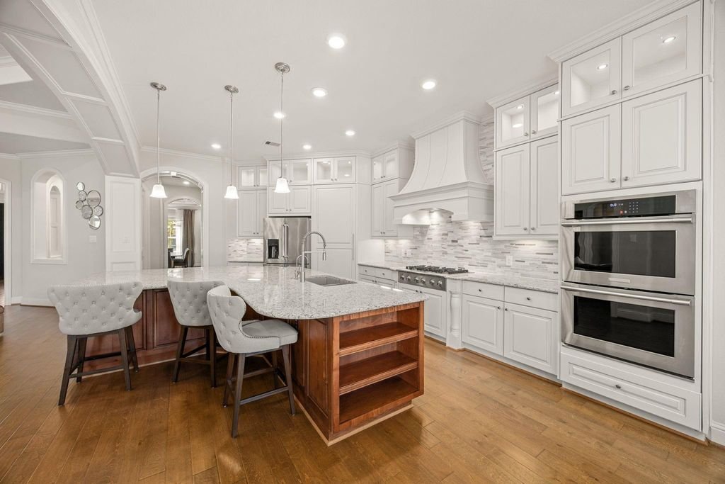 Not just another listing, this is where your next chapter begins. Discover luxury living in this beautifully crafted Village Builders “Castello” home on a premium homesite in Aliana. This elegant 5-bed, 5.5-bath residence features soaring ceilings, detailed mouldings, arches, and a curved staircase. Enjoy a gourmet island kitchen with Electrolux appliances, designer cabinets, granite countertops, and a wine grotto. The spacious family room includes custom built-ins, while the raised study with ceiling beams adds sophistication. Hardwood floors, a game room, media room, and convenient kitchenette elevate the lifestyle. The primary suite offers a spa-like bath with dual vanities and a huge walk-in closet. Relax on the extended covered patio or the rare second-floor balcony. Smart-home features powered by Alexa add modern convenience. Super convenience located near Highway 99, restaurants, and businesses. Your next home awaits, so step in before it’s too late.